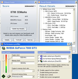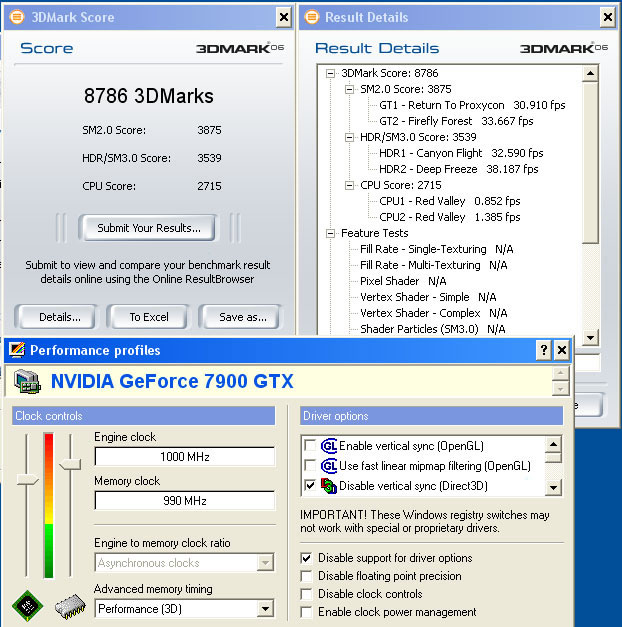 990Mhz futott. Így 3Dmark06 ban 8786 pontot értek el.