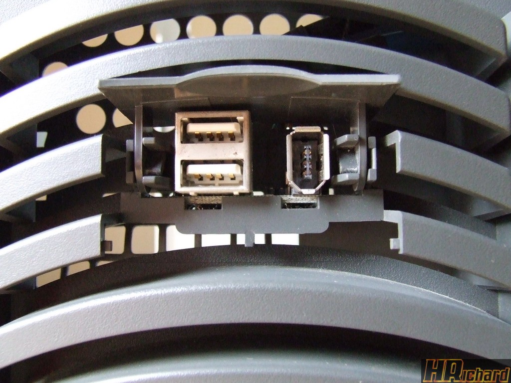 kis fedőlap felhajtása után két USB és egy Firewire kivezetés található.